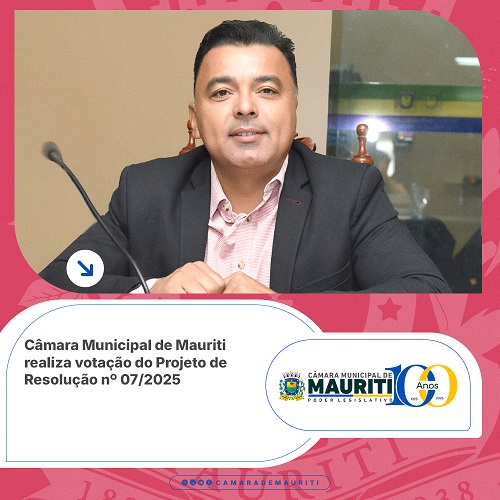 Na sessão desta semana, os vereadores da Câmara Municipal de Mauriti apreciaram e votaram, em única discussão, o Projeto de Resolução nº 07/2025, de autoria do vereador Horaciano Praça Dionízio Montenegro.
