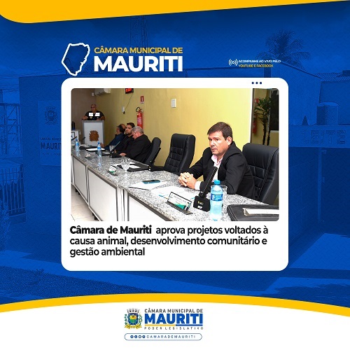 A Câmara Municipal de Mauriti realizou a votação de importantes matérias legislativas durante a sessão plenária, contemplando iniciativas voltadas à proteção animal, ao fortalecimento de associações comunitárias e à organização administrativa da gestão ambiental do município.