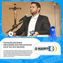 A Câmara Municipal de Mauriti realizou, nesta sessão do dia 28, a votação em única discussão dos Projetos de Lei nº 84, 85 e 86 de 2025, todos de autoria do Vereador Iata Anderson Gomes Oliveira Morais Sampaio (Iata de Guerreiro). As três matérias tratam de temas relevantes para a organização urbana, a inclusão social e o fortalecimento de políticas públicas no município.
