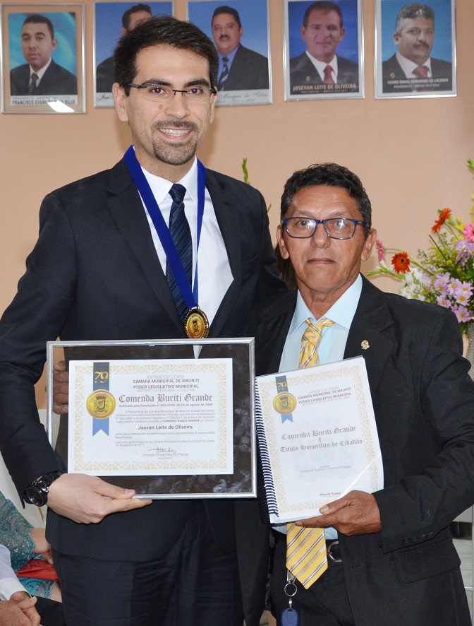 A Câmara de Mauriti se reuniu em sessão solene realizada no último sábado (26), no Plenário José Wilson Barbosa de Oliveira, sede do poder legislativo Municipal, para outorgar títulos de cidadania e agraciar personalidades de Mauriti, com a Comenda Buriti Grande, pelos relevantes serviços prestados ao município.
